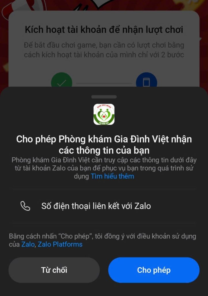 B2: Bấm “Quan tâm” Zalo OA & Cho phép kết nối SDT Zalo của Phòng khám Gia Đình Việt
